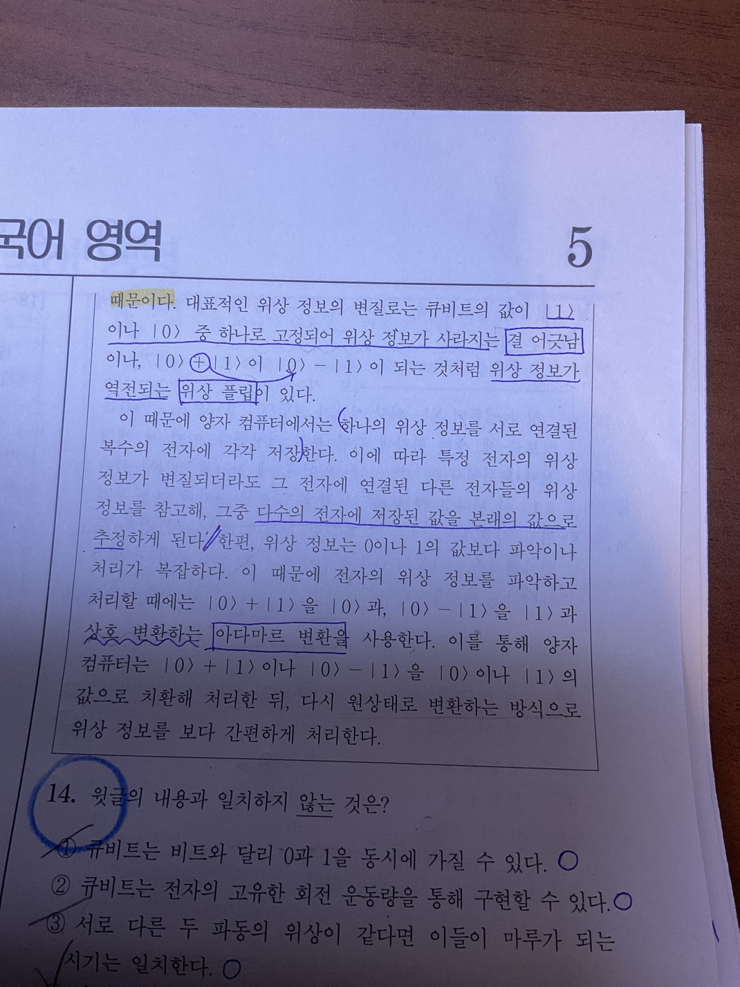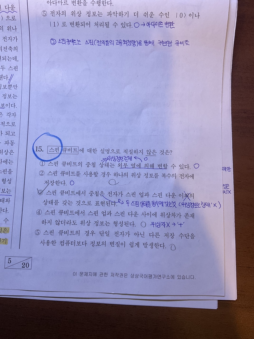 스핀 업과 스핀 다운 '이외의 상태'라고 했기 때문입니다. 위상정보(+,-)가 포함된 상태인 [중첩]은, 스핀 업과 스핀 다운의 상태를 '동시에' 가지는 것이기에, 그 이외의 라고 하면 안 됩니다. '동시에' 입니다.
