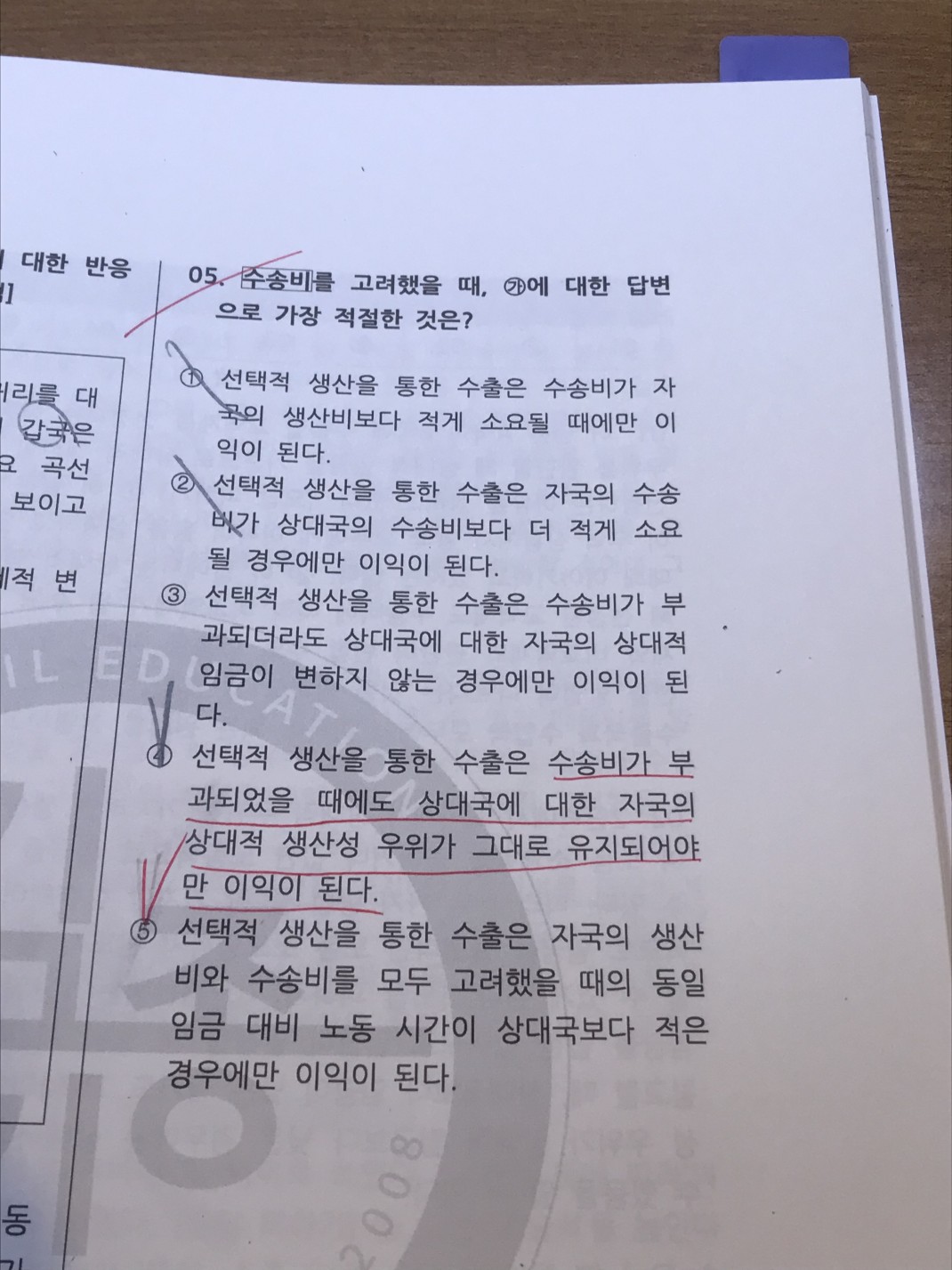 5번선지가 답인 이유는 알겠는데 4번 선지는 왜 답이 안되나요??