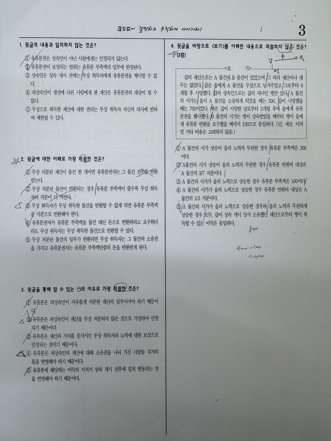 즉 답은, 이와 같은 맥락으로, [피상속인지 재산을 무상 처분하지 않은 것]을 논하는, 즉 [상속인들이 기대했던 이익]을 논하는 2번이 됩니다.