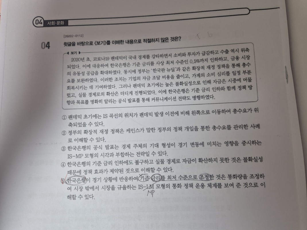 5번 선지에서 중앙은행이 시장 밖에서 시장을 규율하는 건 IS-LM 모형 맞지 않나요?