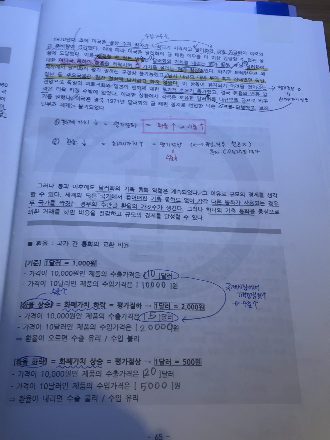 두번째 페이지에 노랑색 밑줄 친 부분들이 이해가 안 가요달러화에 대한 여타국의 환율을 하락시켜서 그 가치를 올리는 평가절상이 왜 해결방법인지,