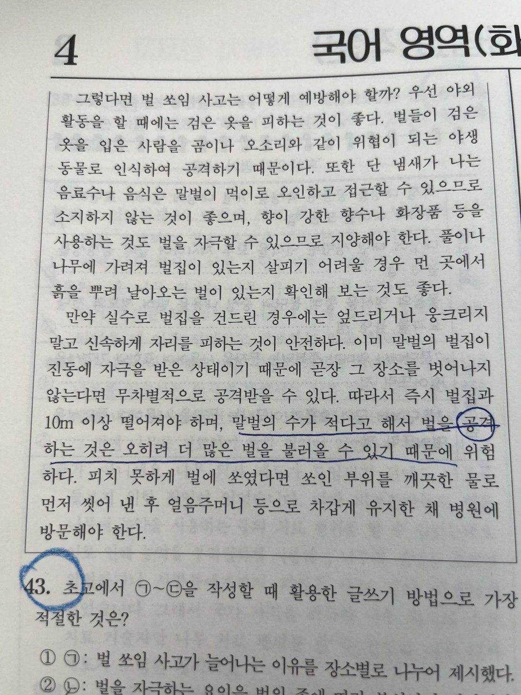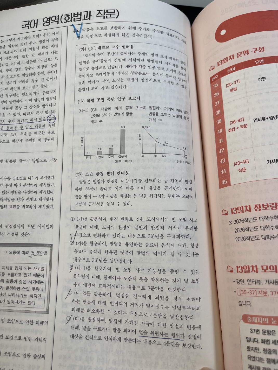 1) 35번에서 상호작용이라는 단어를 썼는데 상호작용은 청자 또한 대답을 하거나 대화를 해야 상호작용으로 볼 수 있는거 아닌가요? 여기서는 그냥 말하는 사람이 반응알 살피기만 해서요2) 45번, 지문에서 벌을 공격하는건 위협을 하는거라서 위험하다 와 5번 선지 벌을 위협하는 행위 로 이어진다고 봐서 5번이 답이 될수있지않나요?