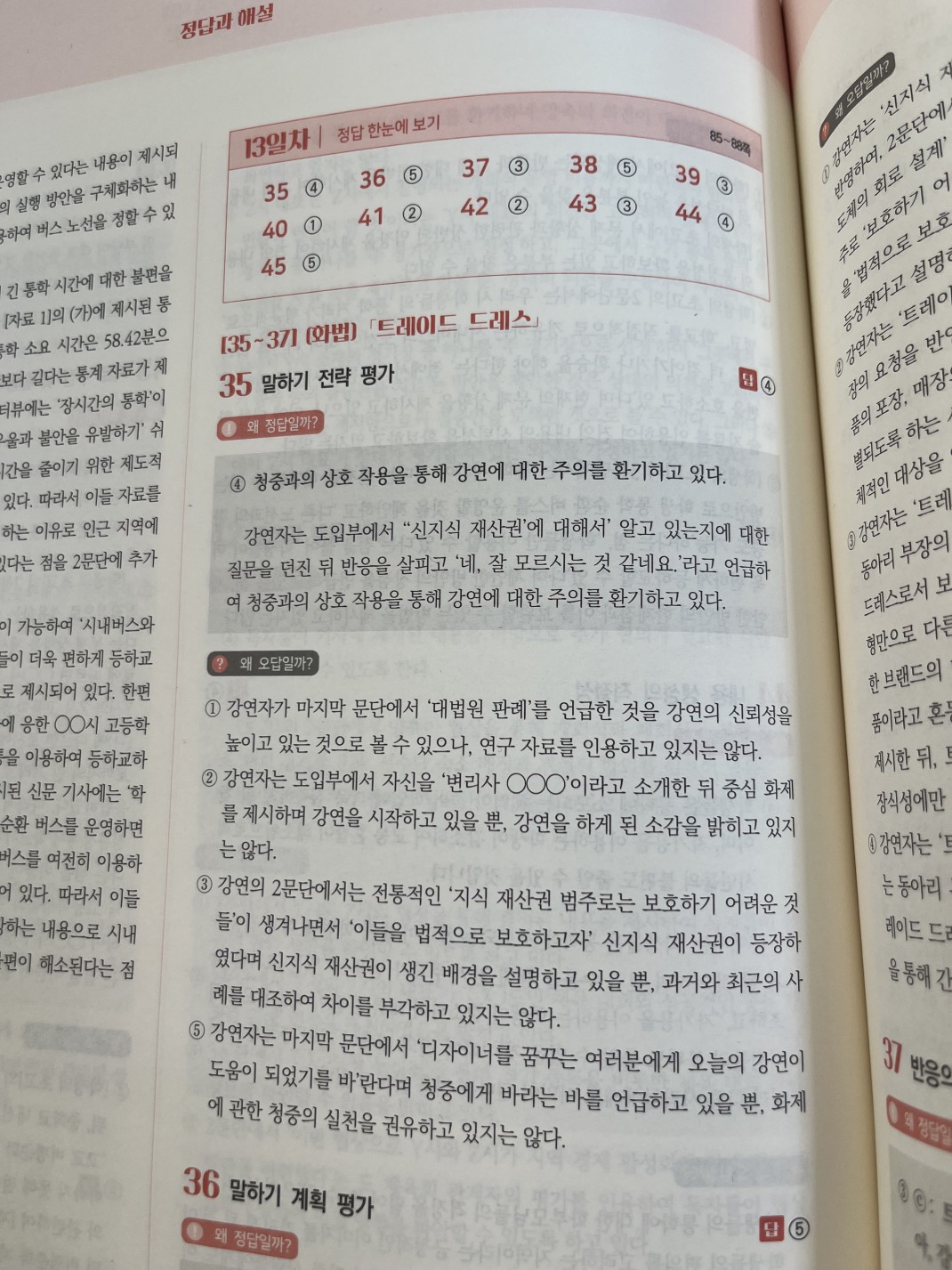 1) 35번에서 상호작용이라는 단어를 썼는데 상호작용은 청자 또한 대답을 하거나 대화를 해야 상호작용으로 볼 수 있는거 아닌가요? 여기서는 그냥 말하는 사람이 반응알 살피기만 해서요