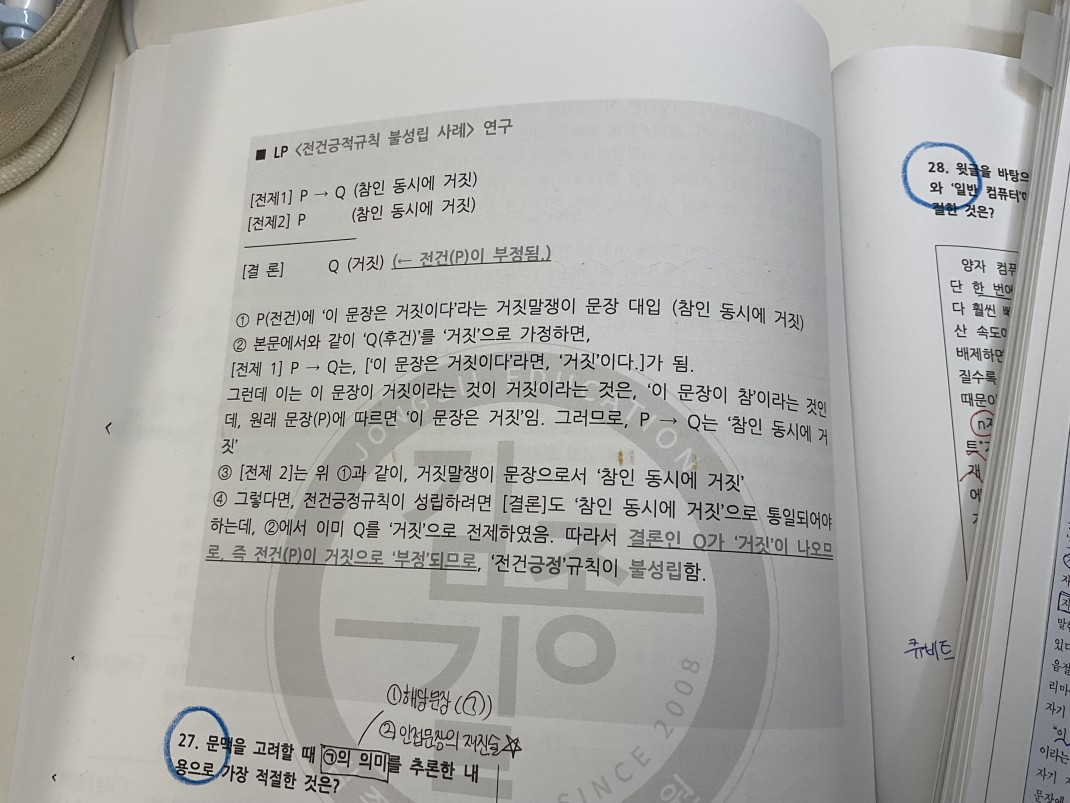 [전제1] P(전건)은 참일 때도 있고 거짓일 때도 있음. (‘이 문장은 거짓이다’ 사례)