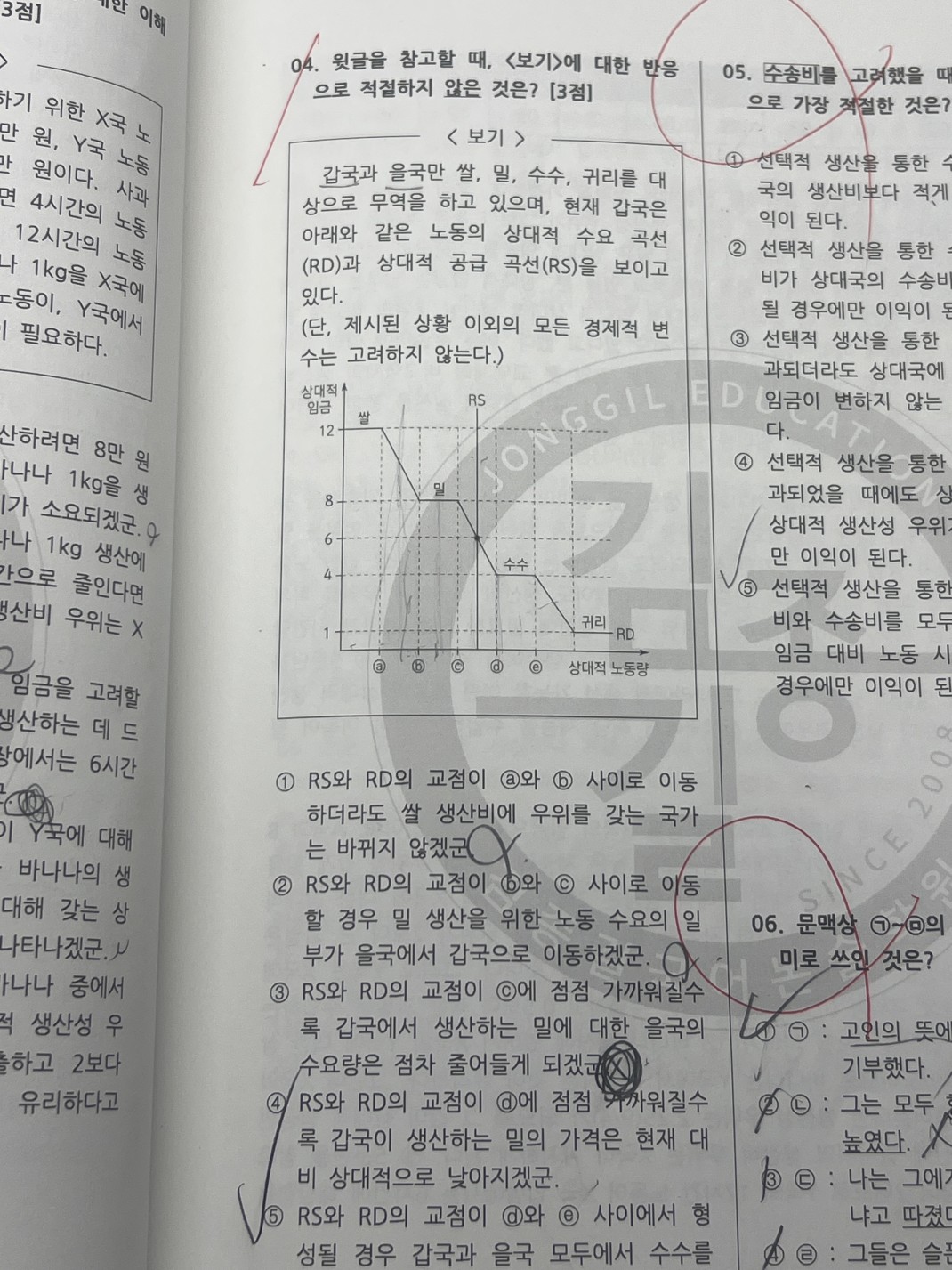 그래프를 보면 갑국이 생산비 우위를 차지중이고 2번에 RsRd 교점이 상대적 노동량 bc사이로 이동 할 경우에 갑국의 상대적 임금은 8인데 그럼 노동 수요는 갑국에서 을국으로 이동 한다 라는 생각인데 이게 맞나여주간노승욱11 day3 사회지문 4번